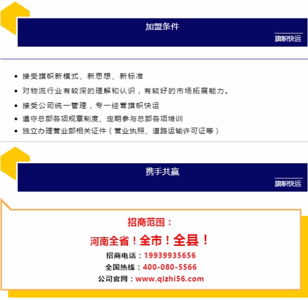 河南旗幟物流有限公司是一家從事道路運輸、貨物配送及貨款代收的綜合型物流企業,公司秉承“同擔共榮、同贏共生”的創業理念,牢記“快,讓生活更方便”的企業使命,不斷加強團隊建設,通過物流團隊、先進的信息技術、簡化物流環節、降低物流成本,滿足客戶多元化的需求,為客戶提供便捷的物流服務,為社會創造效益。