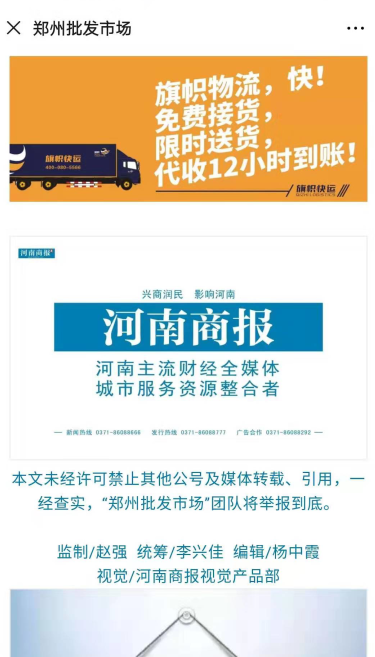 據分析,在此次合作中,旗幟快運正因為有著深厚的基礎條件,才為此次合作取得又一步的推進,一個活廣告可不是那么好做的,不僅要邁進來,更要走出去。這也是河南商報的所看到的旗幟快運不一樣的地方。
